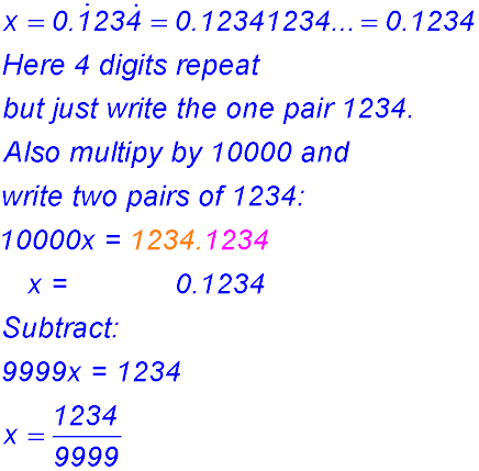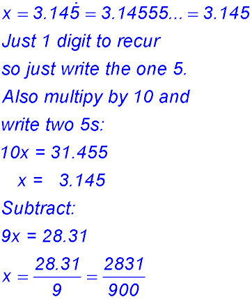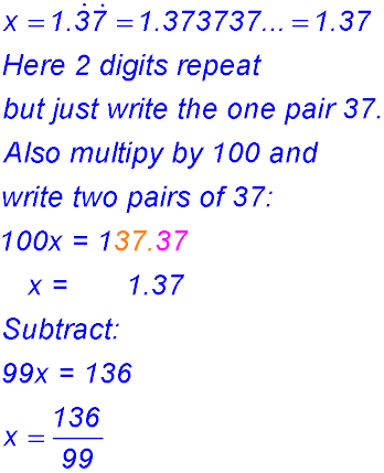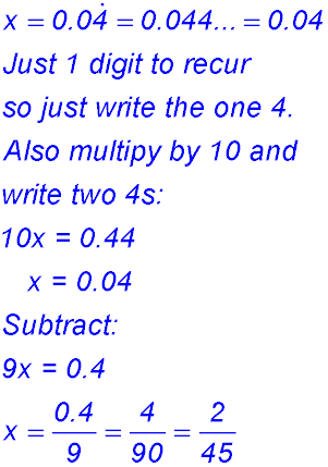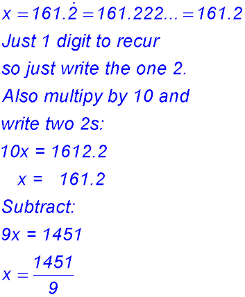 Algebraic approach to recurring decimals.