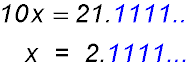 | 2. Multiply both sides by 10 | 10x = 21.1111... |