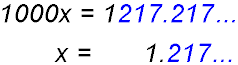 When three digits are repeating - for example the "217" pattern in 1.2172172172... or ![]()