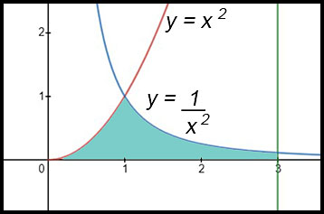 Between 2 curves - one point of intersection. 15.