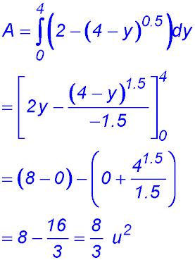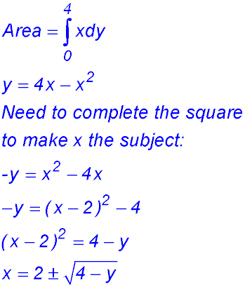 We now take the negative part of this y equation as we want the part of the parabola below x = 2:
