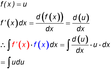 We now easily integrate with respect to the variable u. Then we replace the variable u with the original x term - i.e with f(x) - because the original question was expressed in terms of x.
