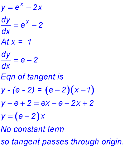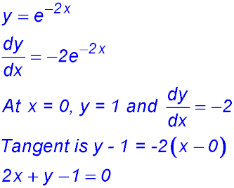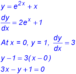 24. Find the equation of the tangent to y = e2x at (0, 1).