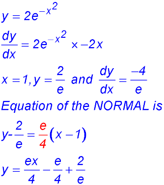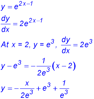 Normals 27. Find the equation of the normal to the curve y = e2x-1 at the point where x = 2 leaving your answer in exact form.