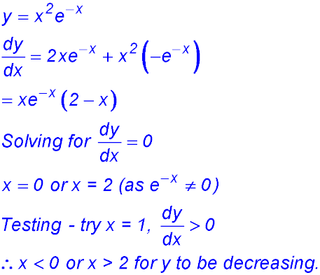 Miscellaneous. 29. y = x2 e-x is decreasing.