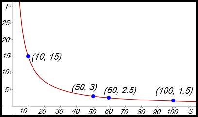 By taking two extreme points and two in the middle of the Speed domain, the hyperbola can be clearly seen. |