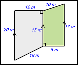 Area = (20 + 15) ÷ 2 × 12 = 210 m2.