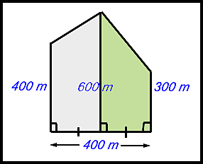 Area = (400 + 600) ÷ 2 × 200 = 100,000 m2.