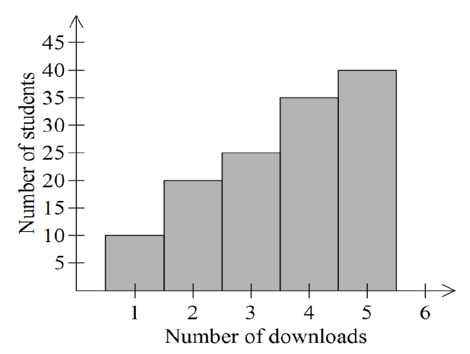 Students were surveyed about the number of downloads they did last week. The results are shown in this cumulative frequency histogram.